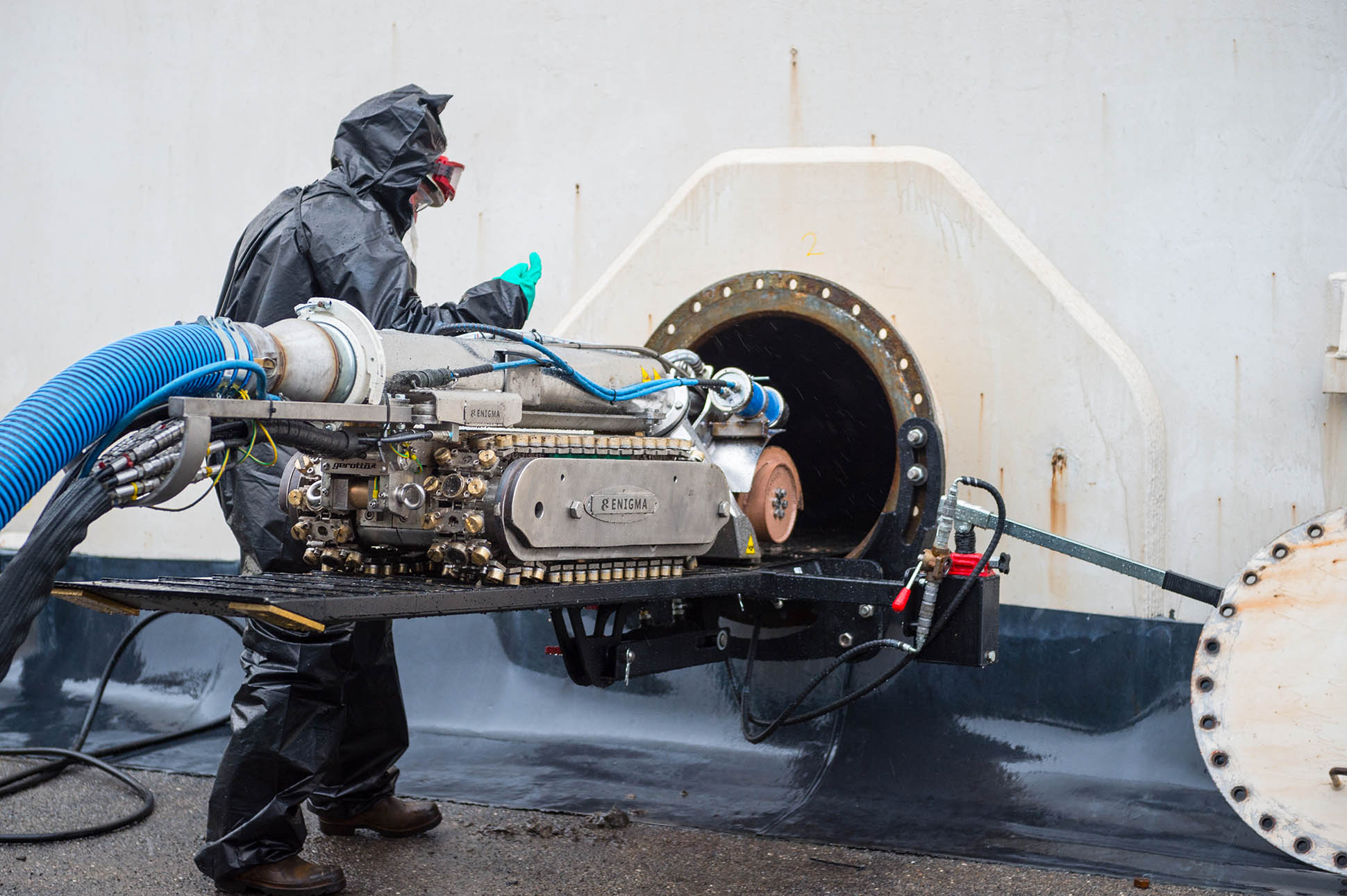 We deploy remote-controlled robotic systems designed to clean storage tanks without human entry. These systems navigate tank interiors, removing sludge and buildup while ensuring operator safety and compliance with confined space regulations.